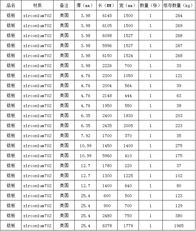 材料:鋯、Zirconium(Zr) 牌號:Zr0 ZR1 Zr2 Zr4 ZR60705 60702